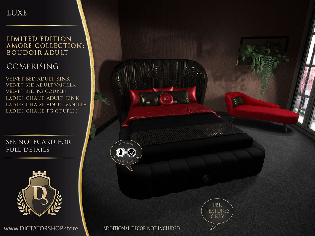 Limited Edition PBR Romance for Shop & Hop February 2026 The furniture you love just received a full PBR glow-up. For Shop & Hop February 2026, DICTATORSHOP presents the Luxe Limited Edition Amore Collection: a one-time, event-exclusive reimagining of the…
